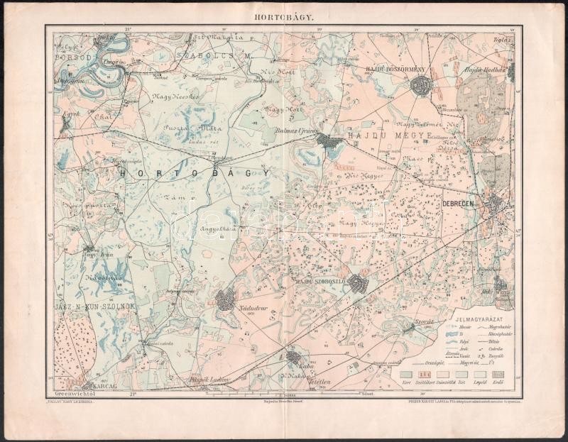 Leírás: cca 1900 Hortobágy térképe, rajzolta: Homolka József, 1:240000, Pallas Nagy Lexikona, kiadja: Posner Károlya Lajos és Fia, ragasztott, 24×30 cm