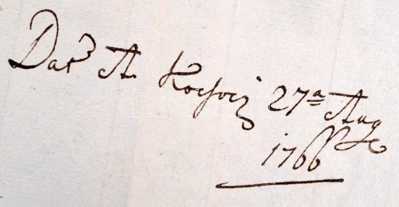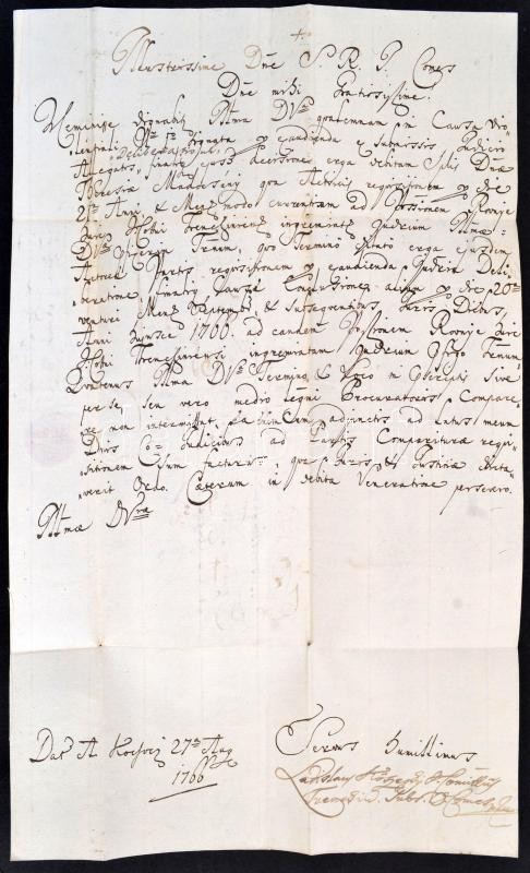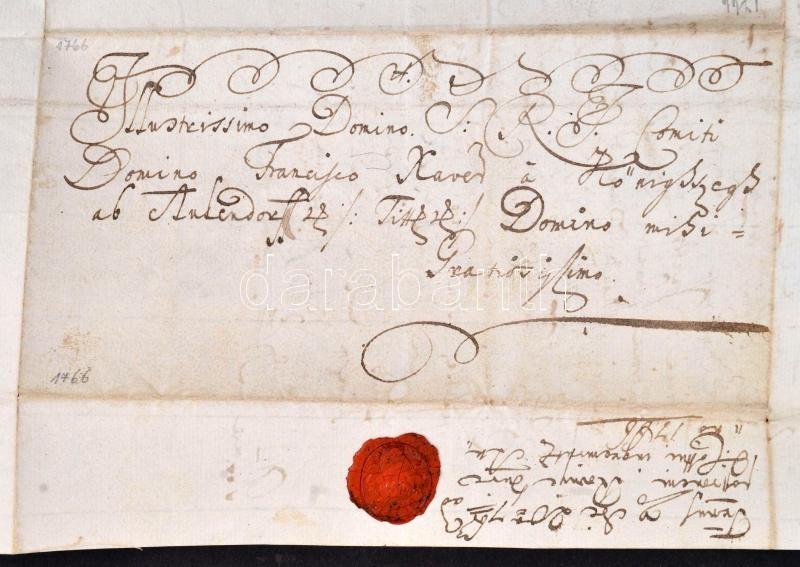 1766 A letter of László Kőszeghy, vicecomes of Trencsén sent to General Francis Xaver Königsegg regarding masterfulness happened on the estates of Teréz Madocsányi, written in Latin, with vax seal on the outside