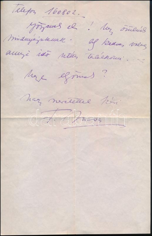 Feszty Masa (1895-1979) festőművész autográf, személyes hangú levele Gerő Ödön esztétának, melyben megköszöni róla írt kritikáját és címe megadásával meghívja magához.