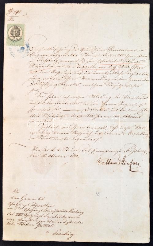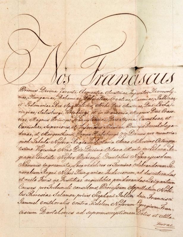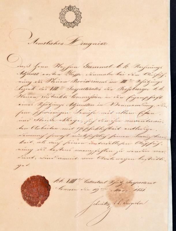 cca 1794-1820 A Gammel család irat hagyatéka, közte I. Ferenc nevében kiállított viaszpecsétes okmány, ex offo levél, katonai okmányok, szép szárazpecsétes iratok, helytartótanácsosok, kamarások aláírásaival, összesen 17 db / Collection of vintage official and military documents from including nice dry seals, signatures ofhigh-ranking persons. Mostly in German and Latin
