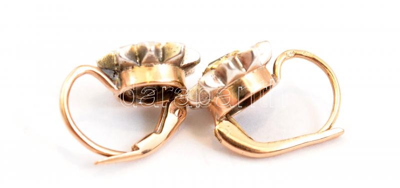 Leírás: Arany(Au) 14K fülbevalópár, jelzett, hiányos kő berakással, bruttó: 4,6 g