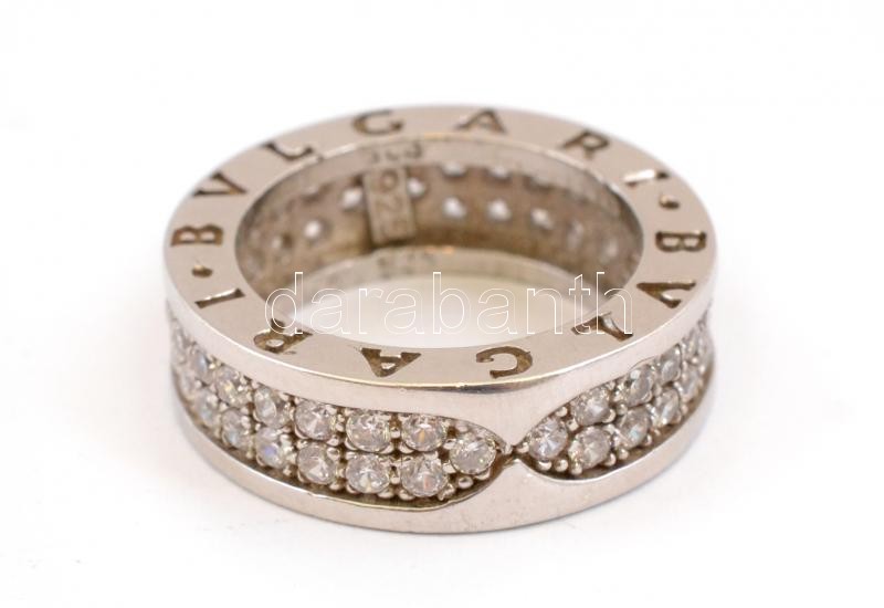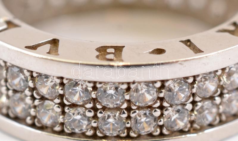 Leírás: Ezüst(Ag) apró kövekkel kirakott gyűrű, Bulgari jelzéssel, méret: 49, bruttó: 6,67 g