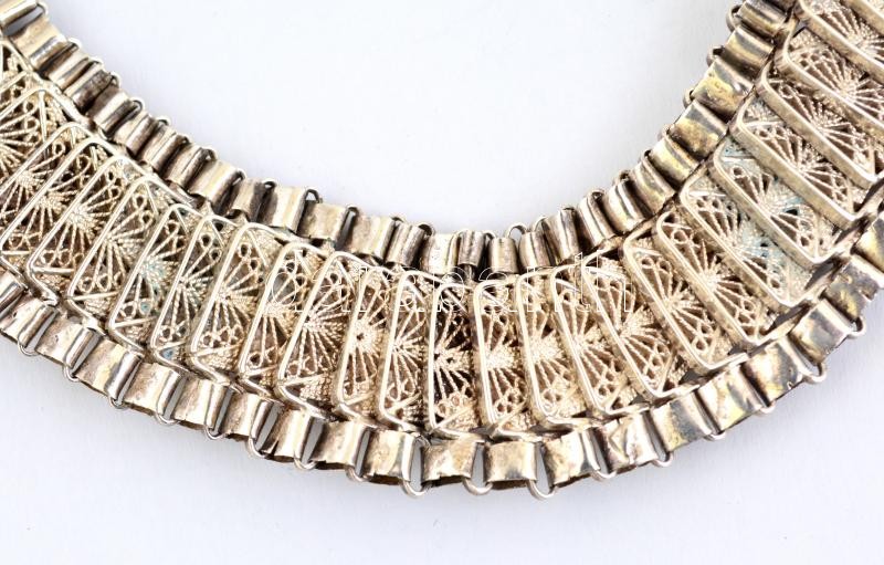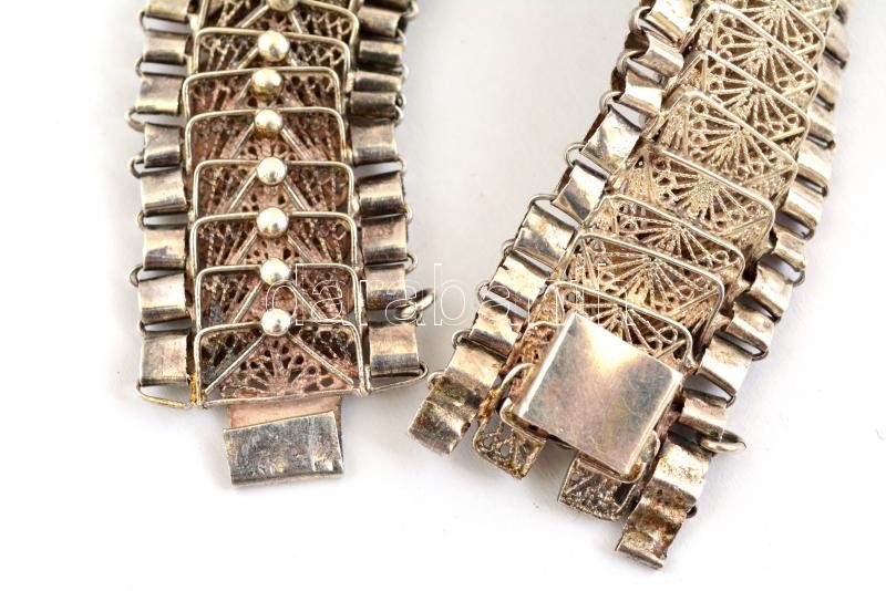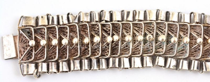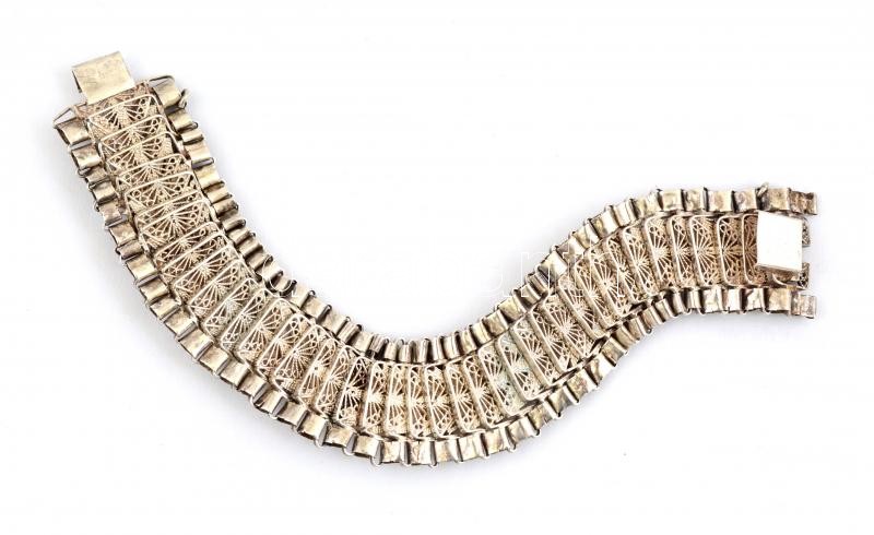 Leírás: Ezüst(Ag) filigrán díszítésű karkötő, jelzés nélkül, h: 20 cm, nettó: 53,55 g