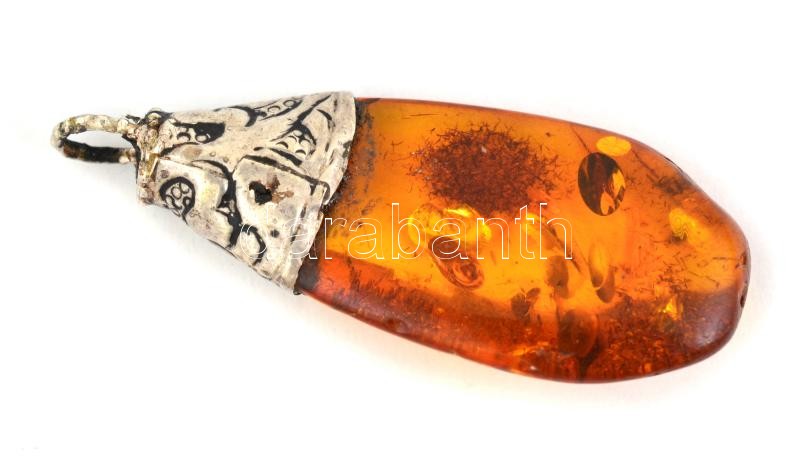 Ezüst(Ag) foglalatú borostyán medál, jelzetlen, h: 4,5 cm, bruttó: 3,0... https://www.darabanth.com/hu/374-Gyorsarveres/374.0/Nemesfem-Disztargyak-Orak-es-Ekszerek/Nemesfem-Disztargyak-Orak-es-Ekszerek~1000024/EzustAg-foglalatu-borostyan-medal-jelzetlen-h-4-5-cm-brutto-3-05-g~II2188650