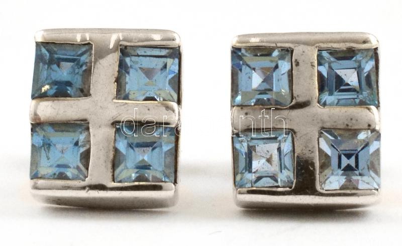 Leírás: Ezüst(Ag) kék kövekkel díszített fülbevalópár, jelzett, 0,8×0,8 cm, bruttó: 2,9 g
