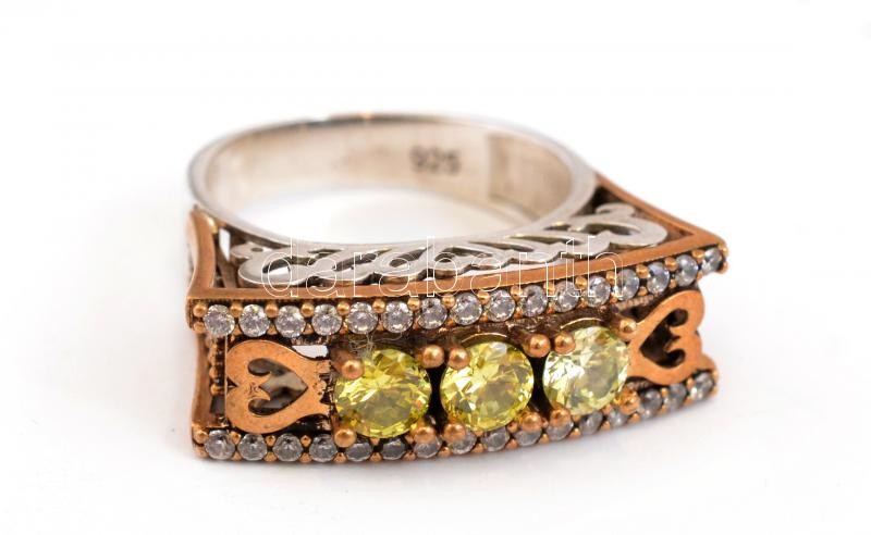 Leírás: Ezüst(Ag) szíves, köves gyűrű, jelzett, méret: 58, bruttó: 6,73 g