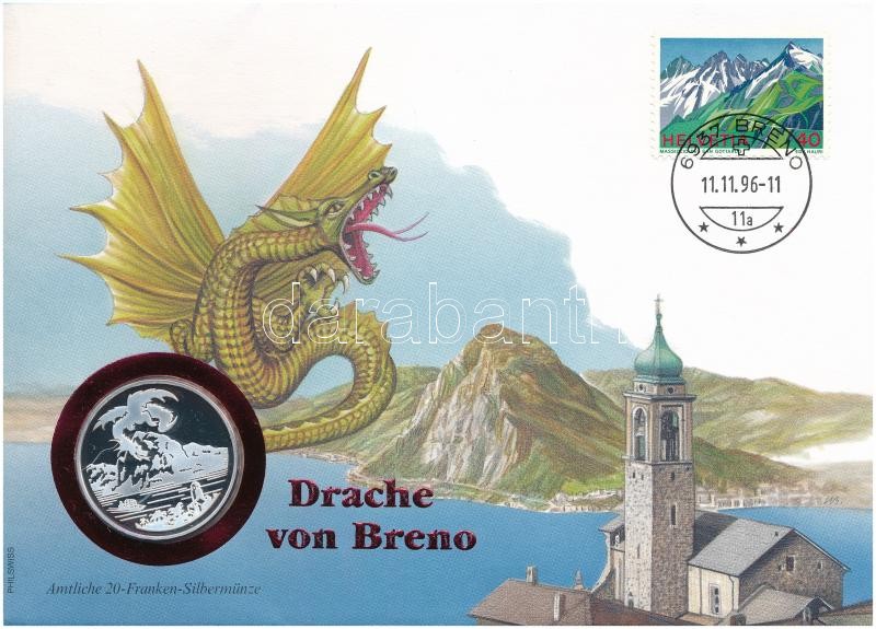 Svájc 1996B 20Fr Ag "A breno-i sárkány" felbélyegzett borítékban, bélyegzéssel T:PP patina