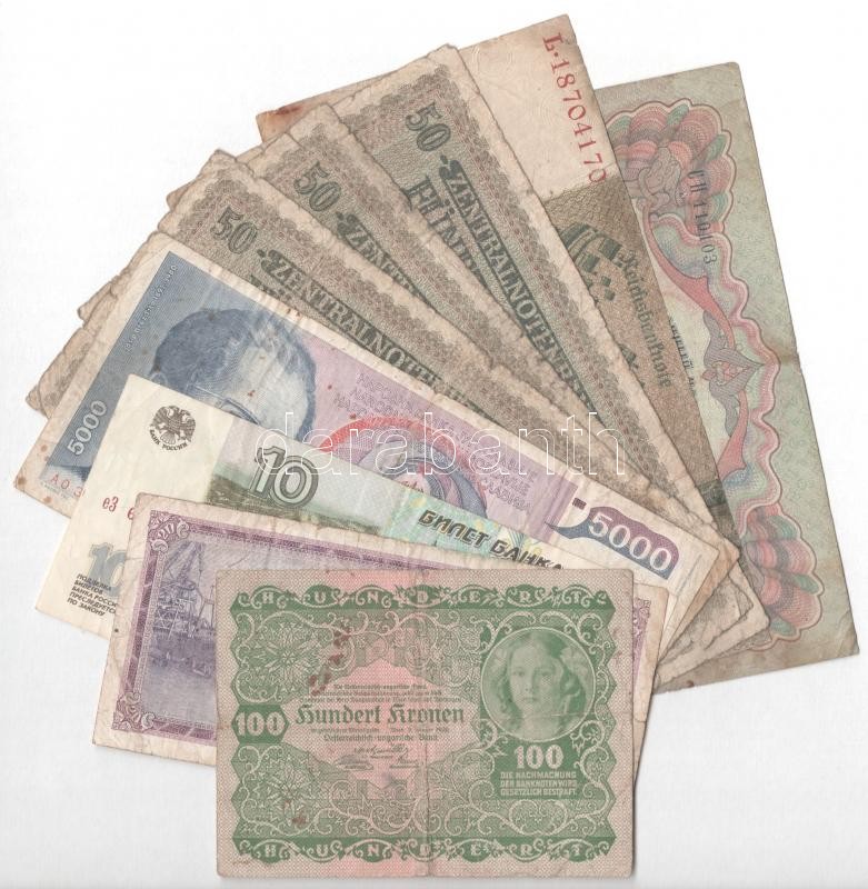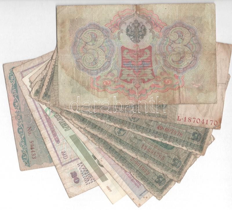9db vegyes külföldi bankjegy, közte ukrán, jugoszláv, orosz bankjegyek T:III,III-