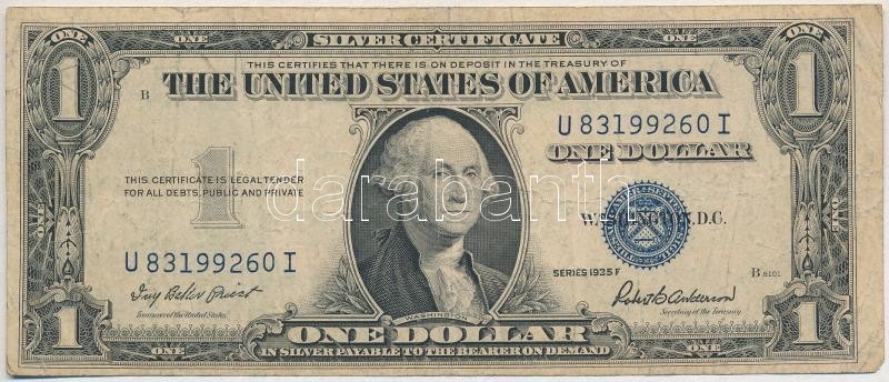 Amerikai Egyesült Államok 1957-1961. (1935F) 1$ "Silver Certificate - kisméretű", kék pecsét, "Ivy Baker Priest - Robert Bernard Anderson" T:III