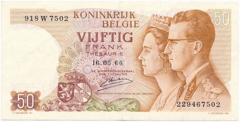 Belgium 1966. 50 Francs C:XF Krause#139 https://www.darabanth.com/hu/374-Gyorsarveres/374.0/Numizmatika/Kulfoldi-bankjegyek~1500013/Belgium-1966-50Fr-TII-Belgium-1966-50-Francs-CXF-Krause23139~II2187278