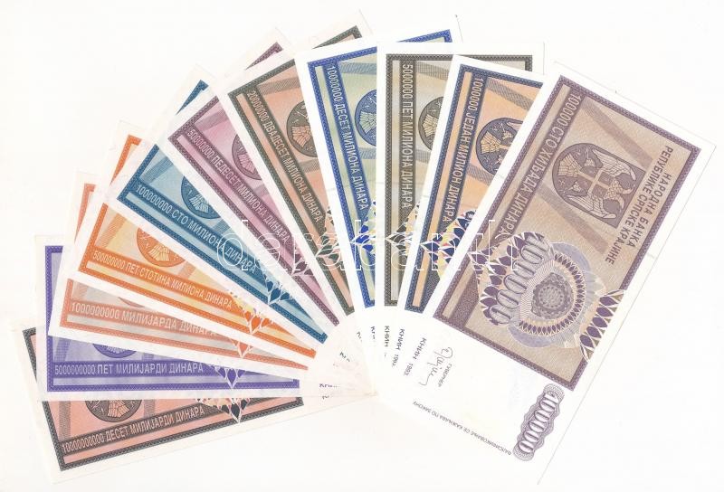 Horvátország / Krajna Szerb Köztársaság 1993. 100.000D-10.000.000.000D (11xklf) T:I Croatia / Republic of Serbian Krajina 1993. 100.000 Dinara - 10.000.000.000 Dinara (11xdiff) C:UNC