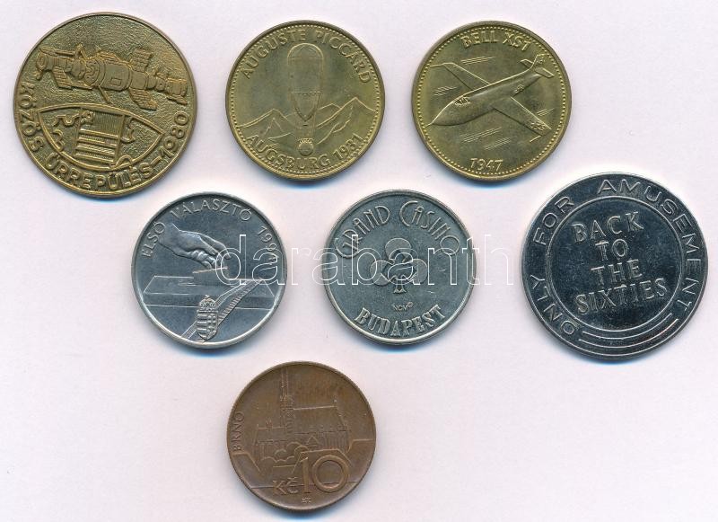 Leírás: 6db-os emlékérem és zseton tétel + Csehország 2013. 10K Fe T:2