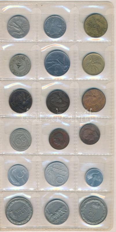 71db vegyes külföldi fémpénz albumba rendezve, közte olasz, francia, török fémpénzek T:vegyes