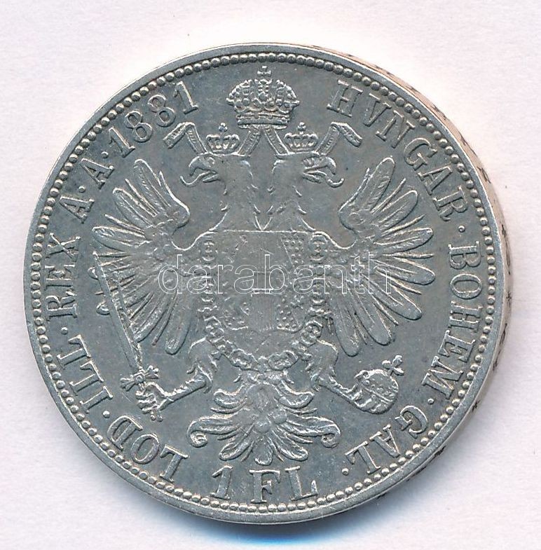 Austria 1881. 1 ... https://www.darabanth.com/hu/374-Gyorsarveres/374.0/Numizmatika/Kulfoldi-fem-es-ezustpenzek~1500021/Ausztria-1881-1Fl-Ag-Ferenc-Jozsef-T2--Austria-1881-1-Florin-Ag-Franz-Joseph-CVF--Krause-~II2184826