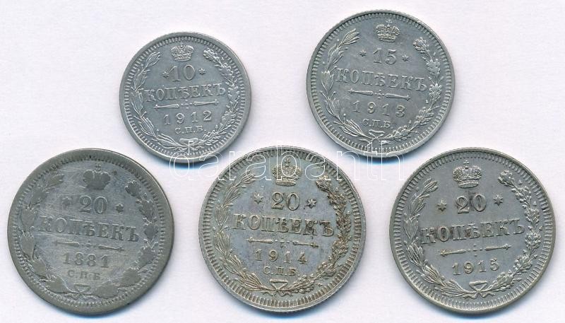 Orosz Birodalom 1912. 10k Ag + 1913. 15k Ag + 1881-1915. 20k Ag (3xklf) T:2-3