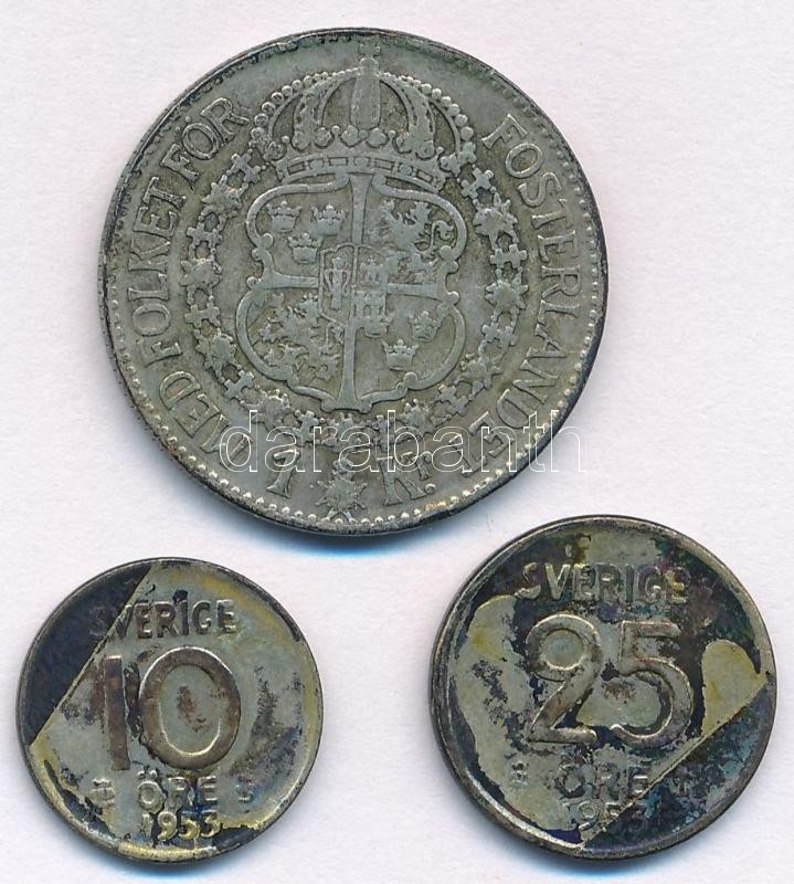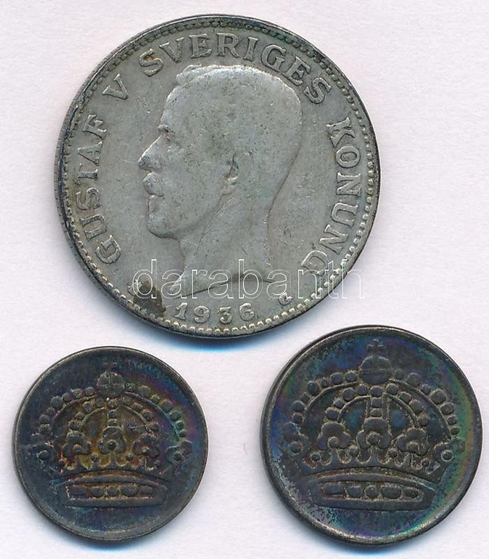 Leírás: Svédország 1936G 1Kr Ag "V. Gusztáv" + 1953. 10ö Ag "VI. Gusztáv Adolf" + 1953. 25ö Ag "VI. Gusztáv Adolf" T:3 patina