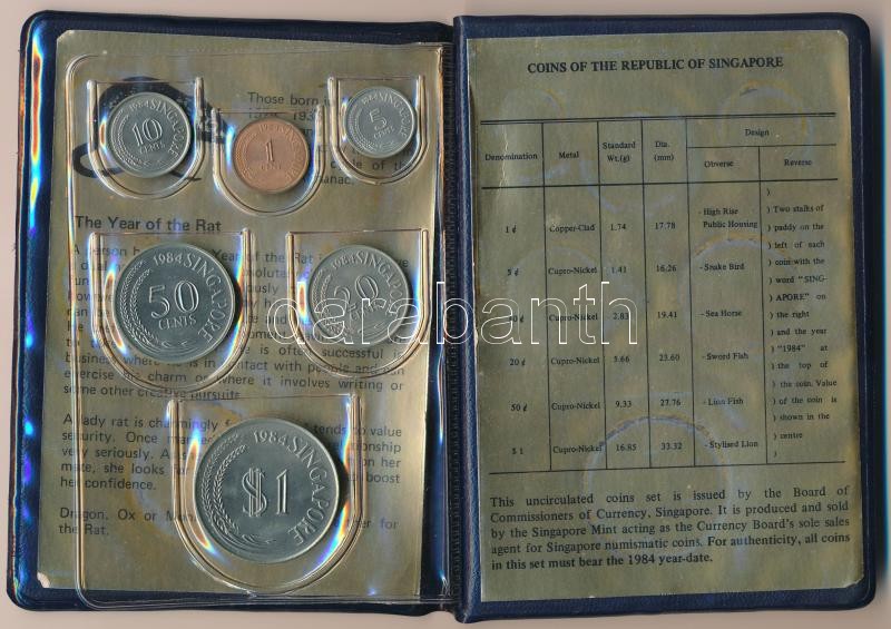 Szingapúr 1984. 1c-1$ (6xklf) forgalmi sor "Patkány éve" eredeti dísztokban T:1 Singapore 1983. 1 Cent - 1 Dollar (6xdiff) coin set in "Year of the Rat" original case C:UNC