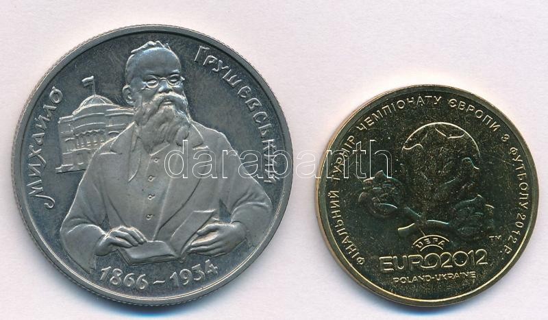 Leírás: Ukrajna 1996. 200.000k Cu-Ni "Mykhaylo Hrushevsky" + 2012. 1H aranyozott Al-Br "Európa Bajnokság" T:1-