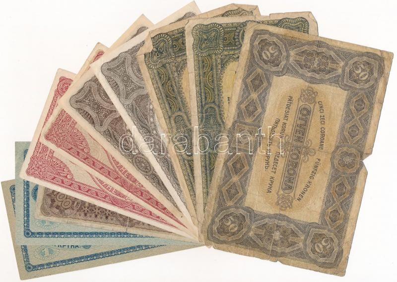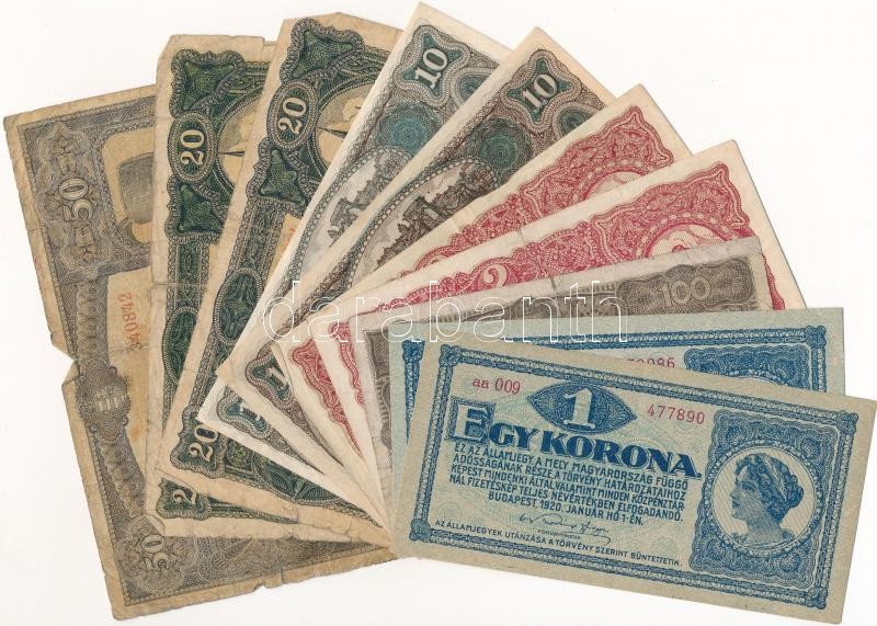 Leírás: 1920. 1K (2x) + 2K (2x) + 10K (2x) + 20K (2x) + 50K + 1923. 100K T:vegyes