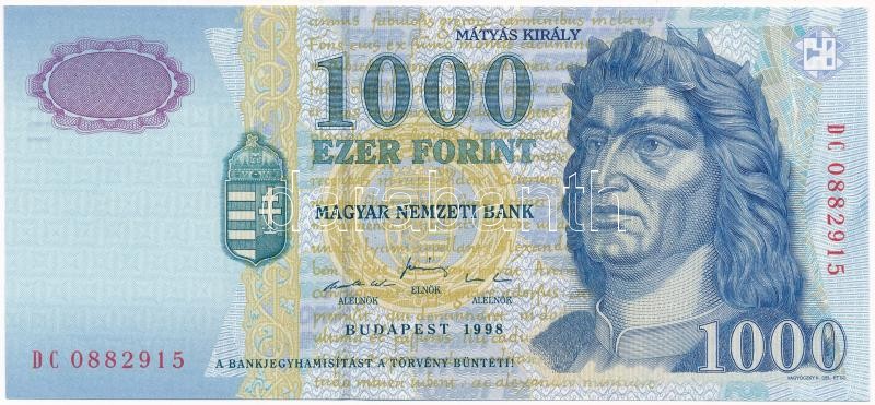 Hungary 1998. 1000 Forint "DC 0882915" C:UNC