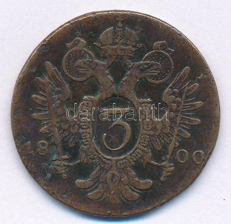Leírás: 1800G 3kr Cu "I. Ferenc" T:2- korróziónyom Huszár: 2025., Unger III.: 1401.c Krause KM#2115.3