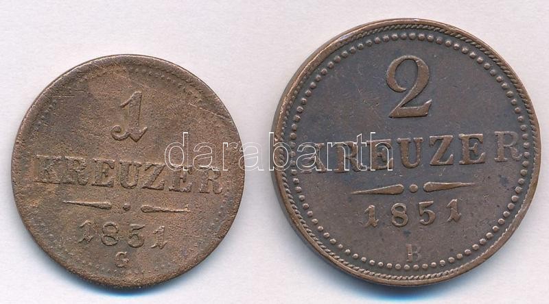 Leírás: 1851G 1kr Cu + 1851B 3kr Cu T:2-,3 ph.