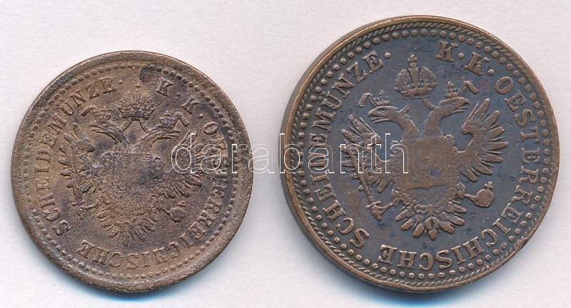 1851G 1kr Cu + 1851B 3kr Cu T:2-,3 ph. https://www.darabanth.com/hu/374-Gyorsarveres/374.0/Numizmatika/Magyar-es-magyar-verdejelu-fem-es-ezustpenzek~1500008/1851G-1kr-Cu-plus-1851B-3kr-Cu-T2-3-ph~II2188732