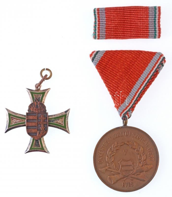 Leírás: 1958. "Belügyminisztérium Tűzoltóság Országos Parancsnokság / 5 éves önkéntes tűzoltói szolgálatért" Br kitüntetés mellszalagon (35mm) + 1996. "Honvédelemért Kitüntető Cím III. osztálya" zománcozott ezüstözött kitüntetés mellszalag nélkül T:2