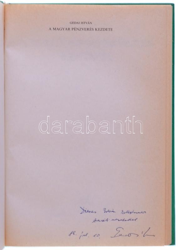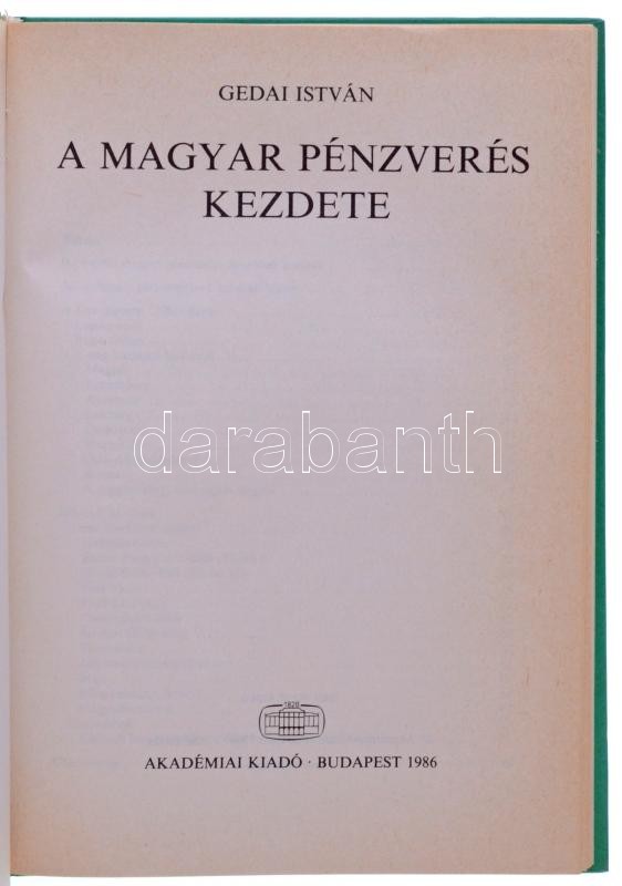 Gedai István: A magyar pénzverés kezdete. Budapest, Akadémiai Kiadó, 1... https://www.darabanth.com/hu/374-Gyorsarveres/374.0/Numizmatika/Numizmatikai-irodalom~1500002/Gedai-Istvan-A-magyar-penzveres-kezdete-Budapest-Akademiai-Kiado-1986-A-szerzo-altal-Die~II2171094