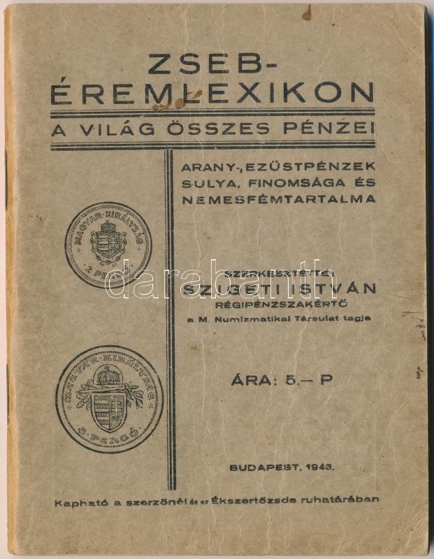 Szigeti István (szerk.): Zseb-éremlexikon - A Világ összes pénzei. Bud... https://www.darabanth.com/hu/374-Gyorsarveres/374.0/Numizmatika/Numizmatikai-irodalom~1500002/Szigeti-Istvan-szerk-Zseb-eremlexikon-A-Vilag-osszes-penzei-Budapest-1943~II2186914