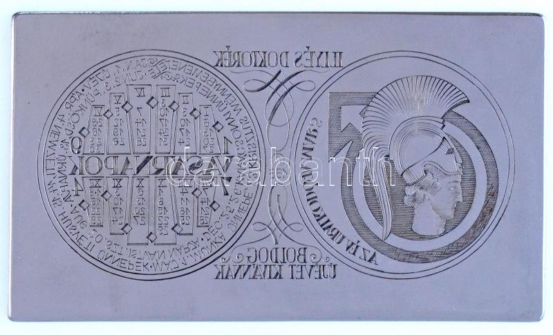 Leírás: 1974. "Illyés doktorék - Boldog Új Évet - Az év uralkodója a Mars" fém nyomólemez (55x95mm)
