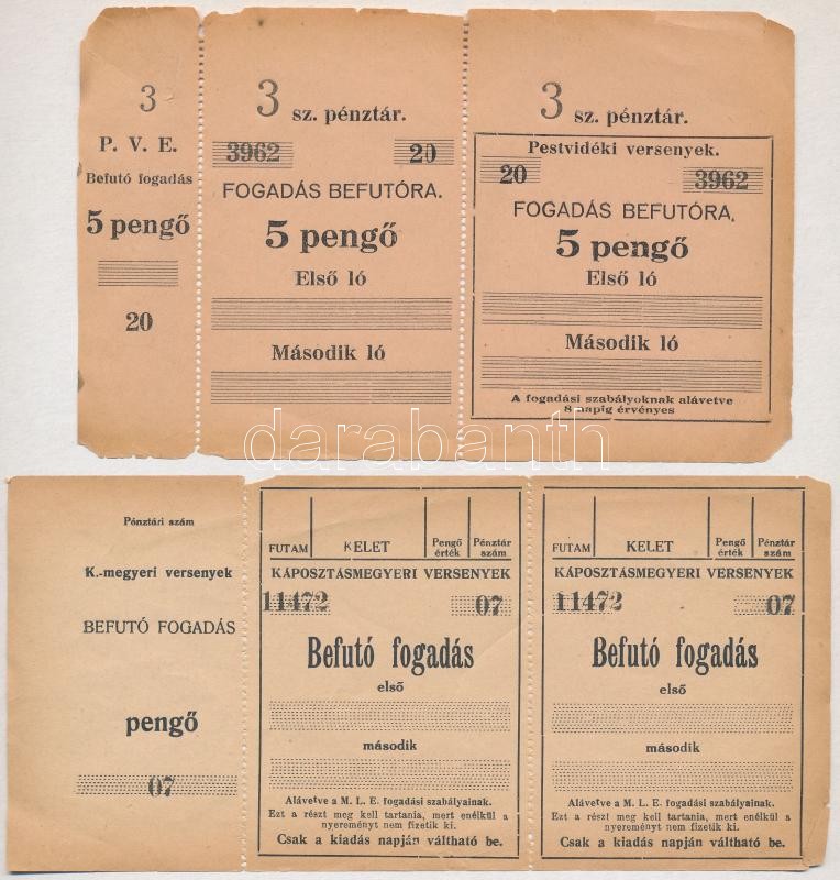 ~1940. "Káposztásmegyeri Versenyek" kitöltetlen lóverseny fo... https://www.darabanth.com/hu/374-Gyorsarveres/374.0/Numizmatika/Numizmatikaval-kapcsolatos-egyeb-tetelek~1500003/7E1940-Kaposztasmegyeri-Versenyek-kitoltetlen-loverseny-fogadolap-TIII~II2186523