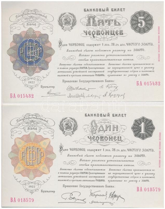 Soviet Union 1922. 1 Chervontsev + 5 Chervontsev copies C:Unc