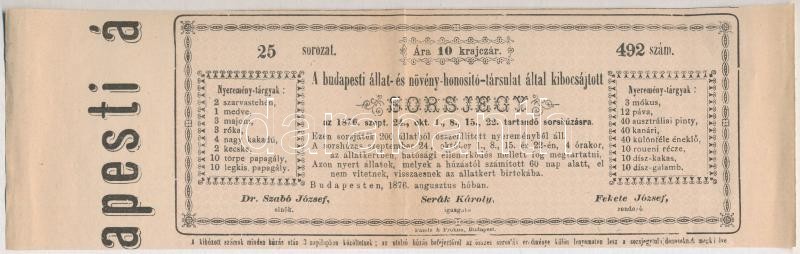 Leírás: Budapest 1880. "A Budapesti Állat- és Növényhonosító-Társulat" sorsjegye T:II-