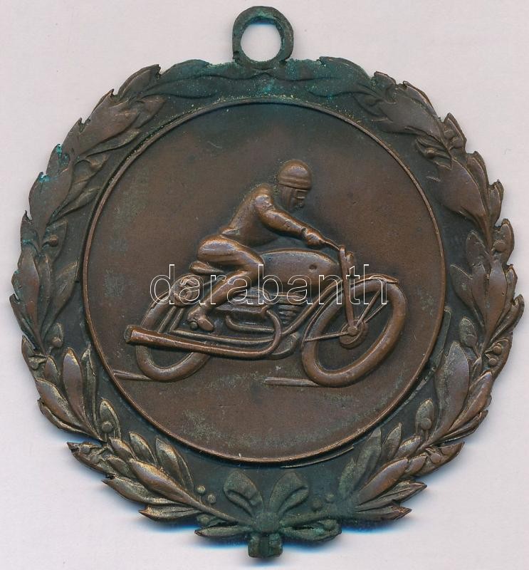 Leírás: 1950. "MMSZ (Magyar Motorsport Szövetség) I." Br fülezett sportérem (56x60mm), T:2 patina