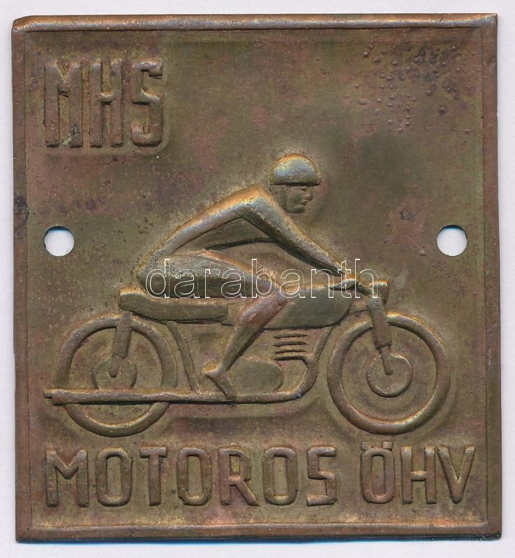 ~1950. "MHS (Magyar Honvédelmi Sport Szövetség) Motoros ÖHV"... https://www.darabanth.com/hu/374-Gyorsarveres/374.0/Numizmatika/Sportdijak-es-sport-emlekermek~1500010/7E1950-MHS-Magyar-Honvedelmi-Sport-Szovetseg-Motoros-OHV-szogletes-lemez-jelveny-felvarrh~II2132547