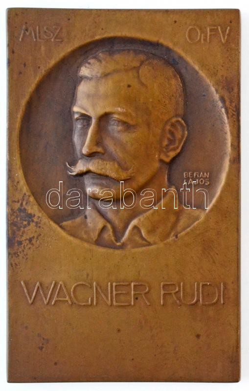 Berán Lajos (1882-1943) DN, a Magyar Labdarúgó Szövetség és az Osztrák Labdarúgó Szövetség által alapított Wagner Kupa emlékplakettje Br "WAGNER RUDI" (50x80mm) T:2-