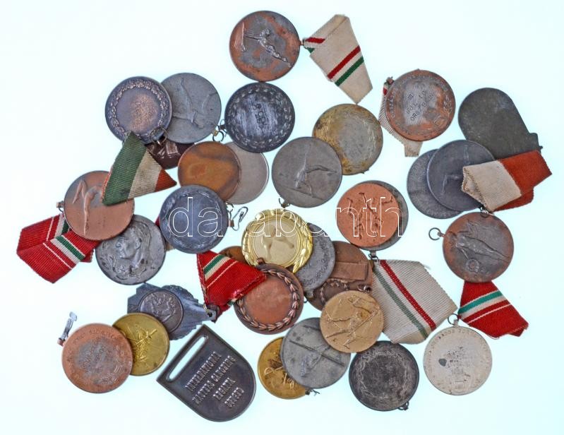 Vegyes 34 db-os sport díj- és emlékérem tétel, közte 1961. "Magyar Országos Torna Szövetség II. Ifj. L. I.O. Orsz. Bajn." kétoldalas Br díjérem szalaggal, 1954. "XII. Nyári Főiskolai Világbajnokság, Budapest" fém díj, T:2-3
