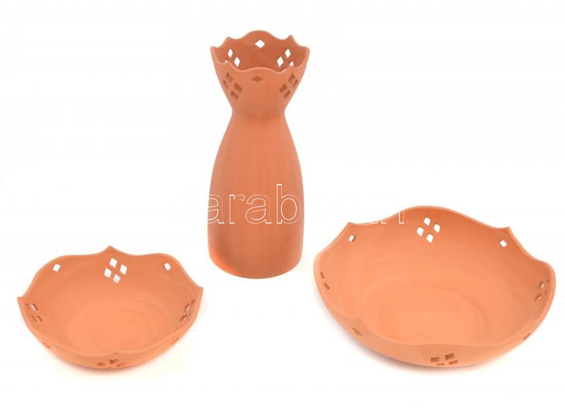 Leírás: Jelzés nélkül kerámia készlet tálak: d: 26 cm, d: 18 cm, Váza 26 cm