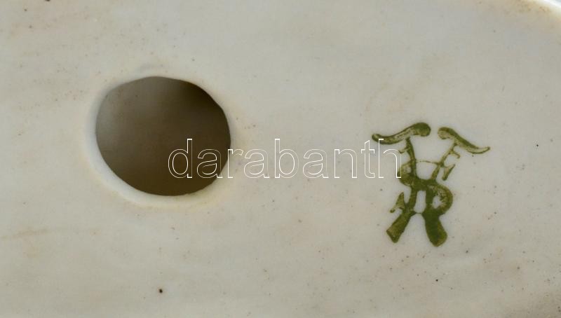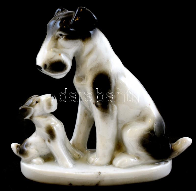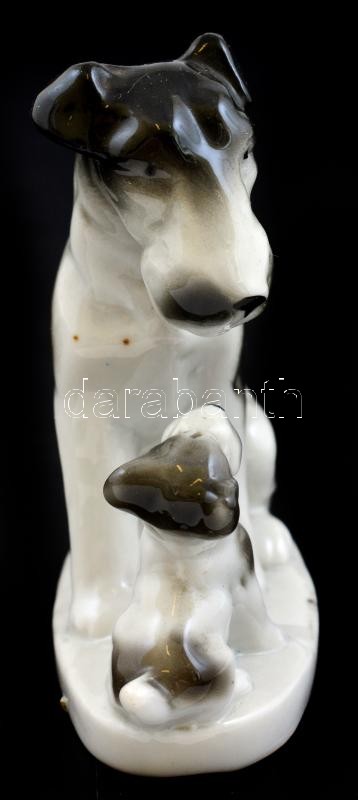 Leírás: Foxterrier (foxi, terrier) kutya kölykével, festett porcelán, jelzett, kisebb mázhibákkal, m: 9,5 cm