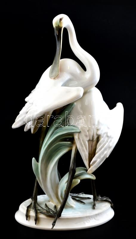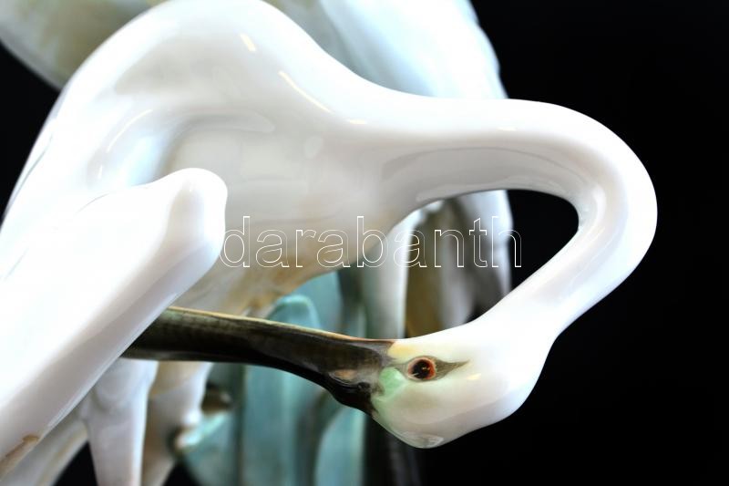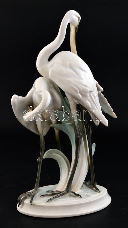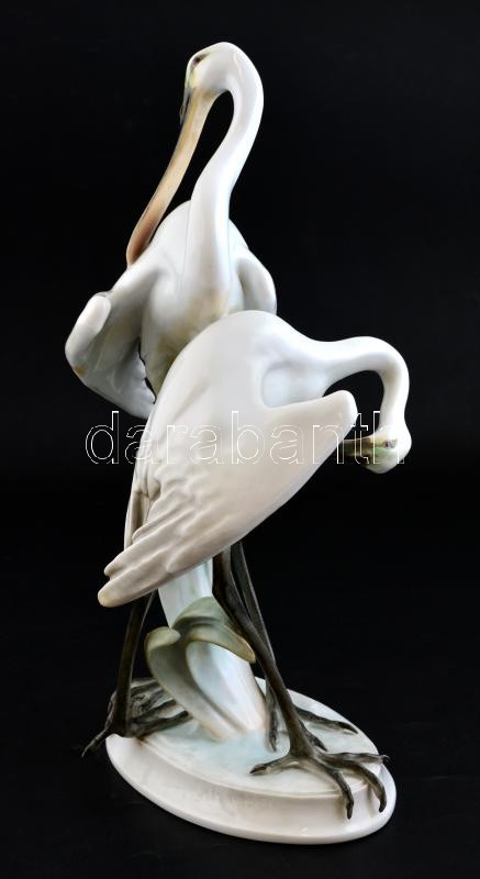 Leírás: Herendi Kanalasgém pár. Kézzel festett, jelzett, a kiálló sarka letört, de megvan, visszaragasztható, m:37 cm