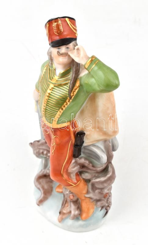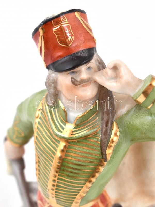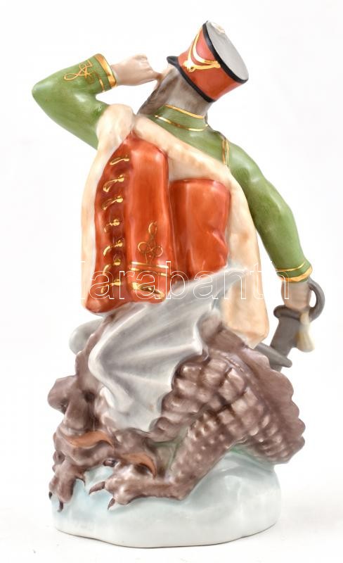 Leírás: Herendi sárkányölő huszár, kézzel festett, jelzett, sérült: hiányos 20 cm