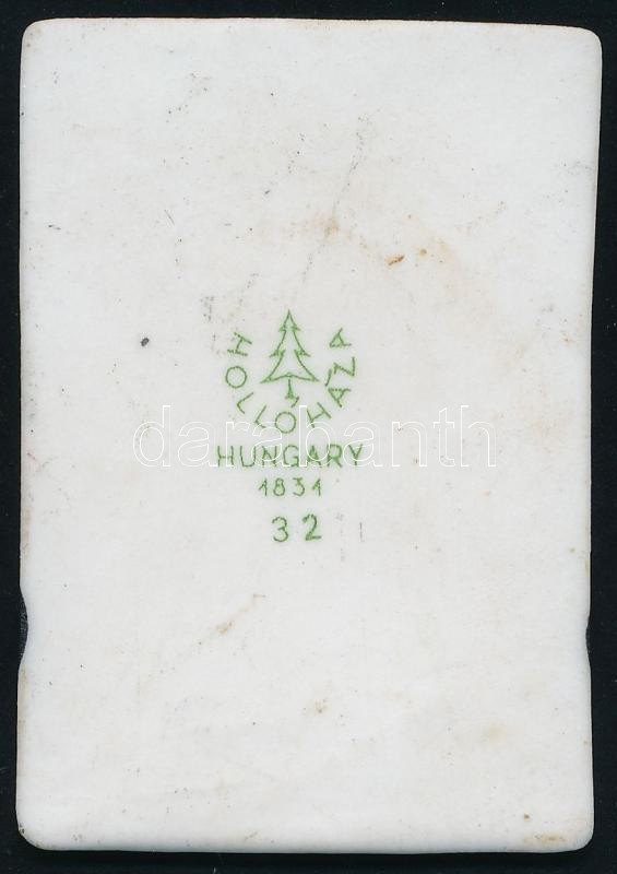 Leírás: Hollóházi Állami Biztosítós reklám porcelán plakett, matricás, jelzett, hibátlan, 5×3 cm