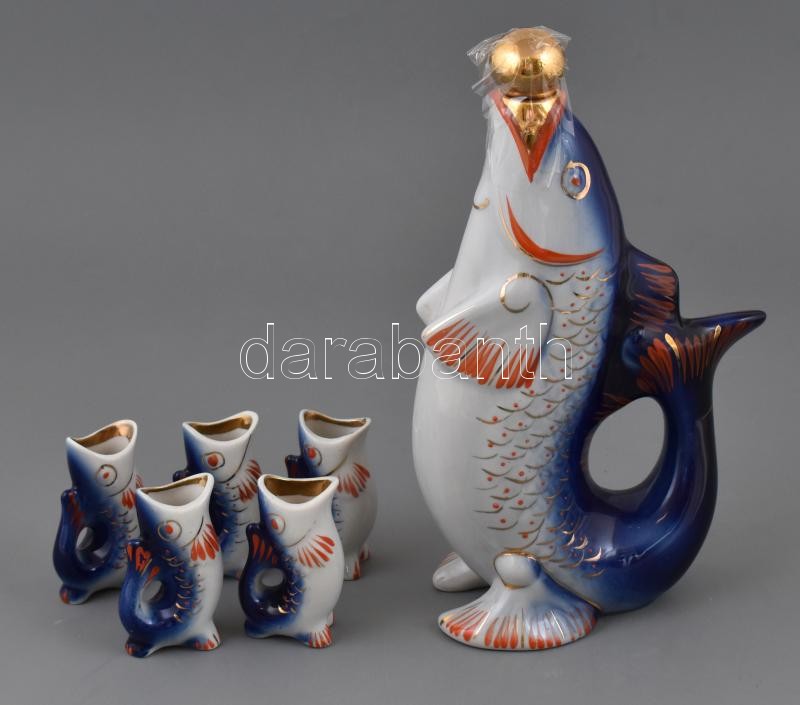 Orosz hal formájú porcelán palack, dugóval, 5 db pohárral, kis kopásny... https://www.darabanth.com/hu/374-Gyorsarveres/374.0/Porcelan-keramia-uveg/Porcelan~6/Orosz-hal-formaju-porcelan-palack-dugoval-5-db-poharral-kis-kopasnyomokkal-m-7-es-26-cm~II2190736