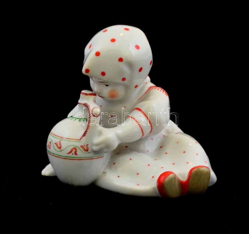Leírás: Zsolnay korsós kislány, kézzel festett, jelzett,hibátlan, m: 7,5 cm