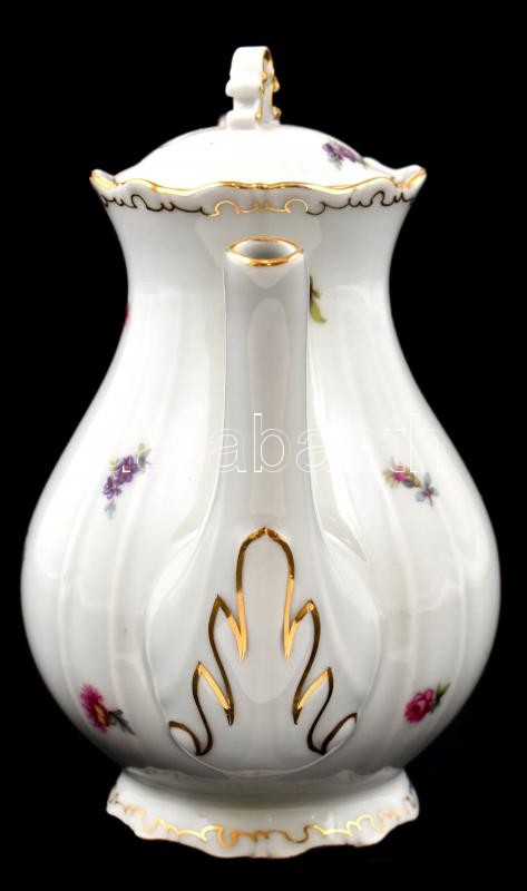 Leírás: Zsolnay virágmintás porcelán kanna, matricás, jelzett, kis kopásnyomokkal, m: 18,5 cm