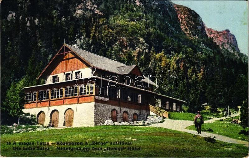 Leírás: 1917 Tátra, Vysoké Tatry; Középorom, Zerge szálló / Prostredny hrot, hotel