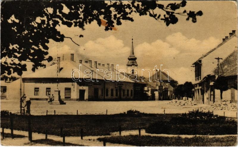 Leírás: 1955 Nagymegyer, Velky Meder, Calovo; utca, üzletek, templom / street view, shops, church (EK)