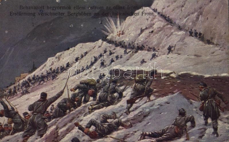 Behavazott hegyormok elleni ostrom az olasz fronton / Erstürmung verschneiter Berghöhen an der italienischen Front / WWI Austro-Hungarian K.u.K. military, mountain troops on the Italian front (ázott sarok / wet corner)