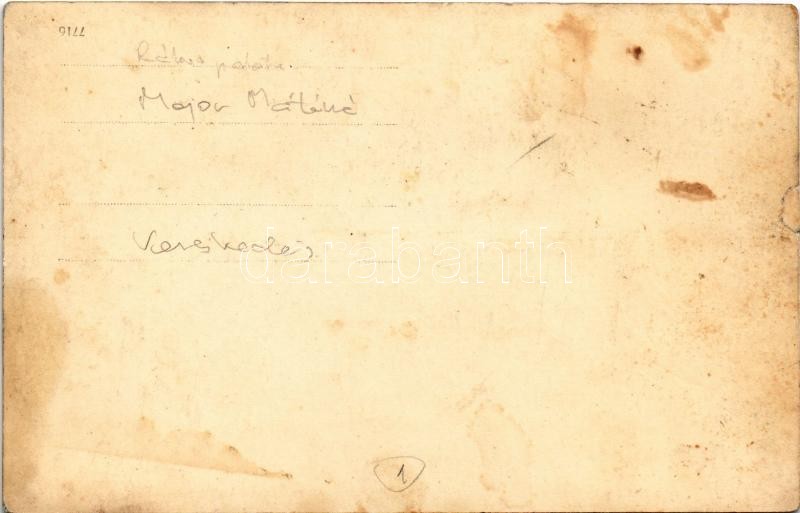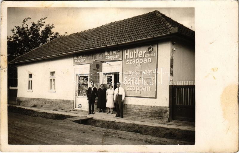 Leírás: Budapest XV. Rákospalota, Major Máténé üzlete, dohányáruda, Hutter szarvas szappan, Asszonydicséret mosópor reklámplakátja. photo (r)